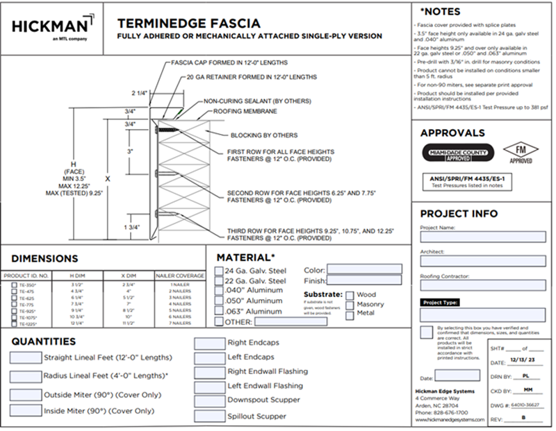 TerminEdge Fascia is Hickman's three-piece snap-on fascia for single-ply applications and provides superior protection from wind and water penetration.